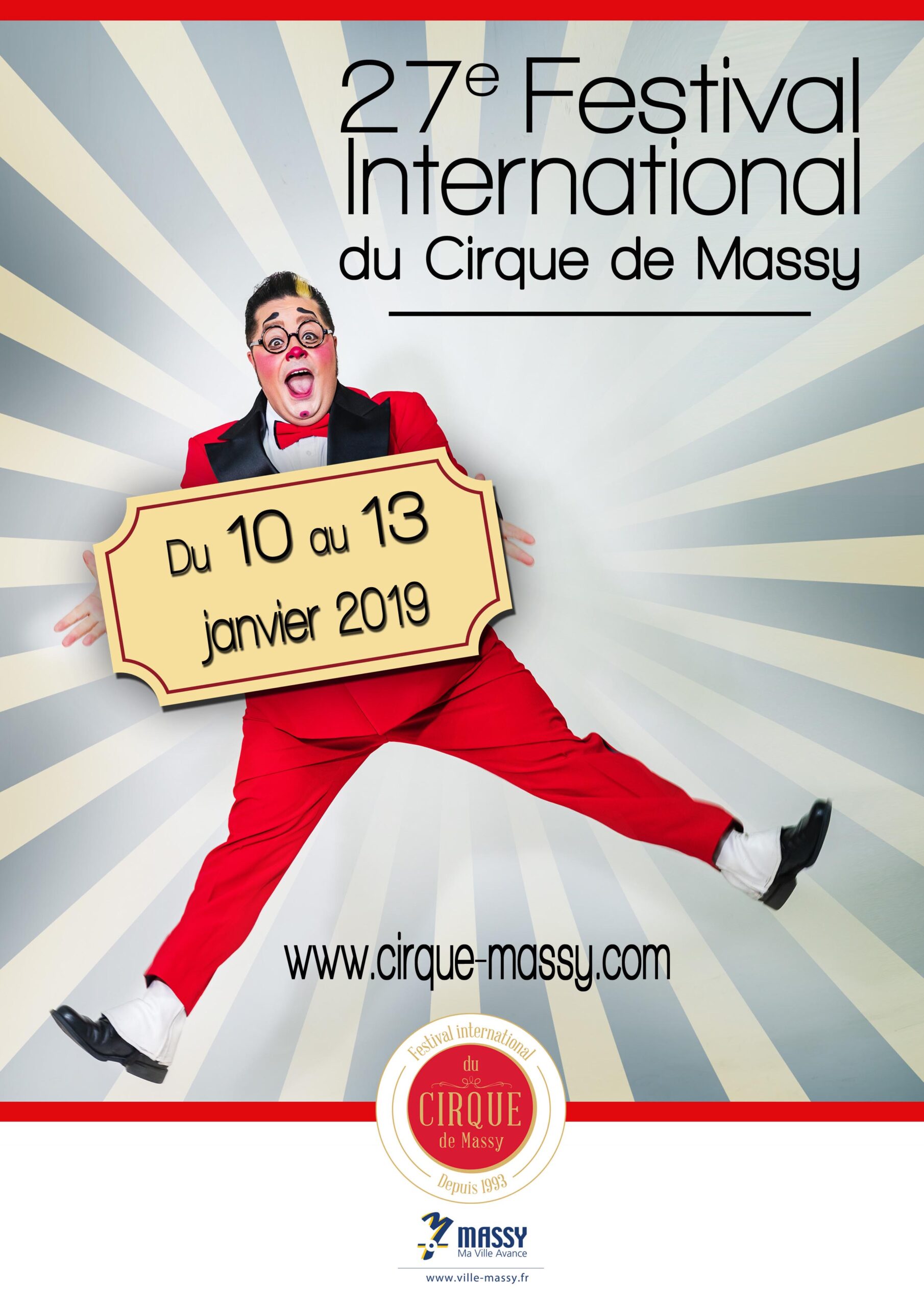 Affiche de l’édition 2019 du Festival International du Cirque de Massy qui se tiendra du 10 au 13 janvier 2019
