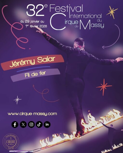 Jérémy Salar est un funambule d’exception, spécialiste du fil de fer, dont la maîtrise étonnante et la poésie du geste en font un moment fort de tout spectacle circassien. Formé à l’Académie Fratellini, il a perpétué une tradition d’équilibre en héritant de techniques ancestrales tout en les réinterprétant avec une vision contemporaine. Dès l’âge de 9 ans, il pratique le fil, et se produit aujourd’hui sur scène dans des numéros qui mêlent sa virtuosité technique à une présence scénique sensible. Sa performance se distingue par sa capacité à combiner sa rigueur d’artiste de cirque avec une émotion contenue, transportant le public dans cette tension entre le risque et la grâce.